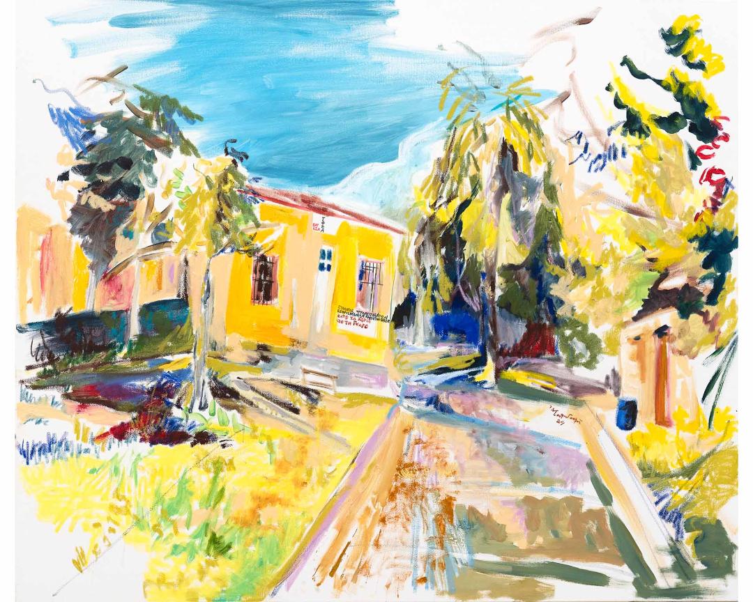 Στον αντίποδα της μελαγχολικής διάθεσης που διαπνέει τα έργα αυτά, η επόμενη ενότητα αποτυπώνει μία παλλόμενη, γεμάτη ζωντάνια ατμόσφαιρα με τα λαμπερά, σχεδόν fauve χρώματα που συνυπάρχουν σε εκρηκτικούς συνδυασμούς. Το βλέμμα της ζωγράφου αγκαλιάζει με τρυφερότητα αγαπημένα σε όλους μας σημεία στην πόλη, από το Μουσείο Κυκλαδικής Τέχνης στη Βασιλίσσης Σοφίας μέχρι στέκια για καφέ και ποτό στα Εξάρχεια και το Παγκράτι. Ανθρώπινες μορφές ενοικούν τα έργα αυτά, σε στιγμές χαλαρής κοινωνικότητας, συνομιλώντας, χαζεύοντας τις βιτρίνες ή αφήνοντας το βλέμμα να περιπλανηθεί σε μία πανοραμική άποψη της Πλατείας Ομονοίας από ψηλά.