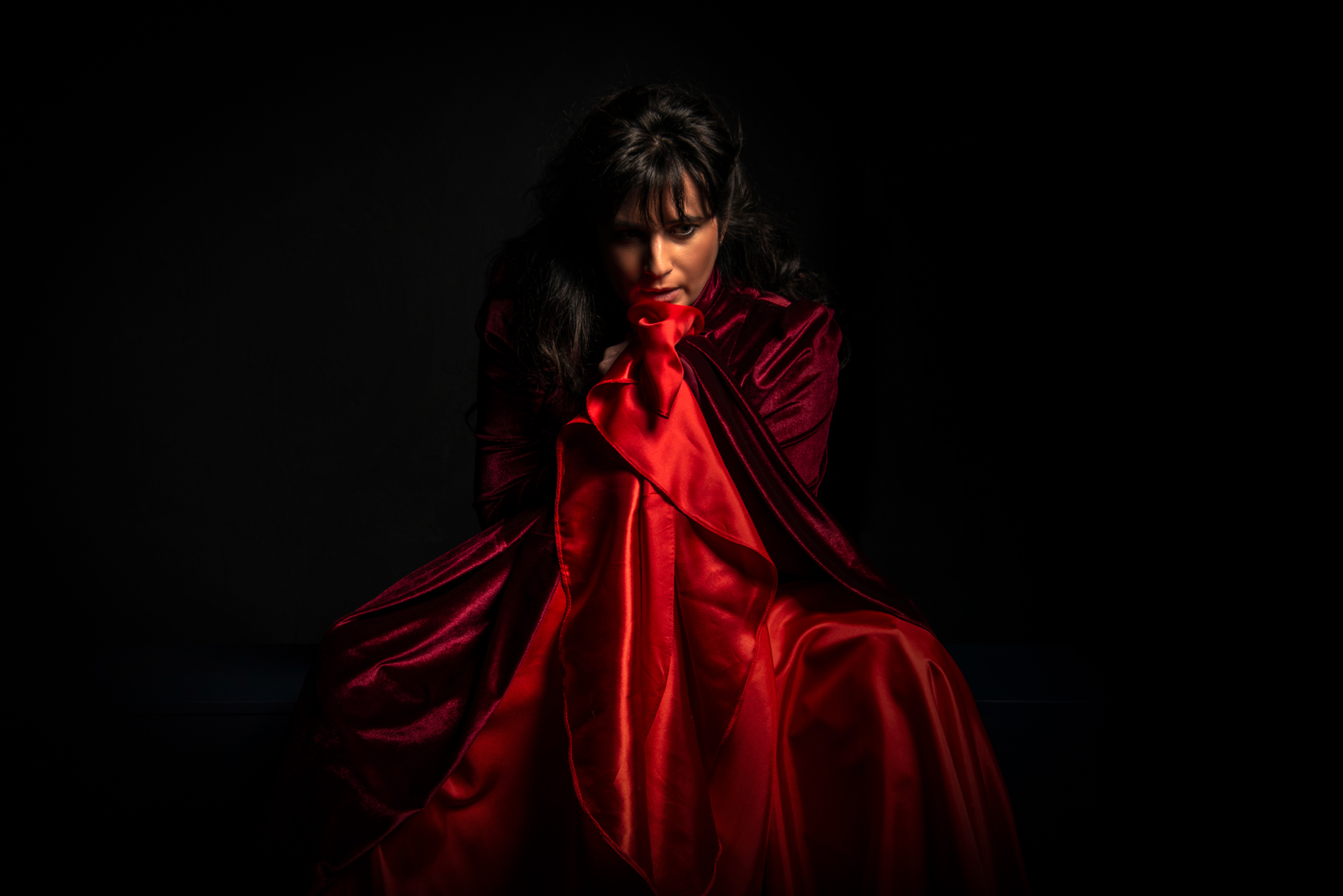 Το σκηνικό στην σκηνή του Vault έχει μετατραπεί σε ένα μυσταγωγικό, ιδιαίτερο κελί μοναστηριού. Εξαιρετική έμπνευση του Γιώργου Λιντζέρη. Στις δύο πλευρές της σκηνής δεσπόζουν οι δύο τεράστιες αγιογραφίες. Της Παναγίας της Βρεφοκρατούσας και στην απέναντι πλευρά του Αγίου Γεωργίου (υπέροχη δουλειά της Κικής Μαυρίδου) Πολύχρωμα καντήλια τρεμοπαίζουν μπροστά και στις δύο εικόνες. Η Σοφία Καψούρου μας περιμένει εκεί ακίνητη μέσα στο βελούδινο υπέροχο κόκκινο-πορφυρούν φόρεμά της. Χρώμα πνευματικό, ιερατικό, βασιλικό και αυτοκρατορικό.Το χρώμα του πάθους, του αίματος, του Ολυμπιακού. (Σχεδιασμένο από τον Γιώργο Λιντζέρη και ραφή Παναγιώτας Τσομπανάκη).