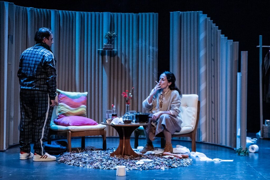 Η Τάνια Παλαιολόγου είναι η Μαρία, η γυναίκα του Ντίνου και θύμα κακοποίησης, όπως διαπιστώνουμε ήδη από τα πρώτα λεπτά της παράστασης και είναι σε μεγάλο μέρος του έργου ένας «βωβός» χαρακτήρας. Η Τάνια Παλαιολόγου σε αυτό τον ρόλο είναι απόλυτα συγκλονιστική και συναρπαστική. Με τις κινήσεις του σώματός της και το βλέμμα της κατορθώνει να μεταδώσει όλη την βία πολλών μορφών που υφίσταται με μία σπάνια αμεσότητα και τρυφερότητα στην ερμηνεία της. Με μία εσωτερικότητα αξιοσημείωτη και αξιέπαινη κατορθώνει να μας χαρίσει μια εμπειρία καθηλωτική σε έναν ρόλο που αποτελεί δύσκολο στοίχημα και το οποίο κέρδισε με τεράστια επιτυχία. Υπέροχη στις στιγμές που μιλάει και μαγνητικά εύγλωττη ακόμα και στις σιωπές της. Πρόκειται για μια ερμηνεία τόσο συναρπαστική που θα τη θυμόμαστε για καιρό.
