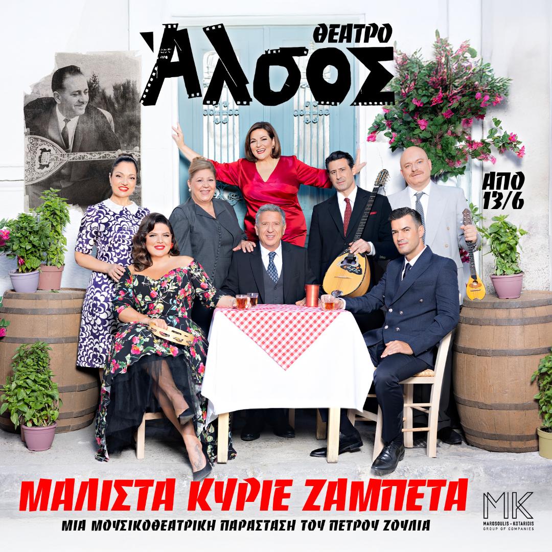 Η μουσικοθεατρική παράσταση του Πέτρου Ζούλια «ΜΑΛΙΣΤΑ ΚΥΡΙΕ ΖΑΜΠΕΤΑ» έρχεται με πολύ κέφι στο Θέατρο ΑΛΣΟΣ από την Παρασκευή 13 Ιουνίου με την Βίκυ Σταυροπούλου, τον Κώστα Κόκλα, τον Γιάννη Τσιμιτσέλη, την Δανάη Μπάρκα, την Ελένη Καρακάση, τον Λευτέρη Ελευθερίου και την Χριστίνα Τσάφου.