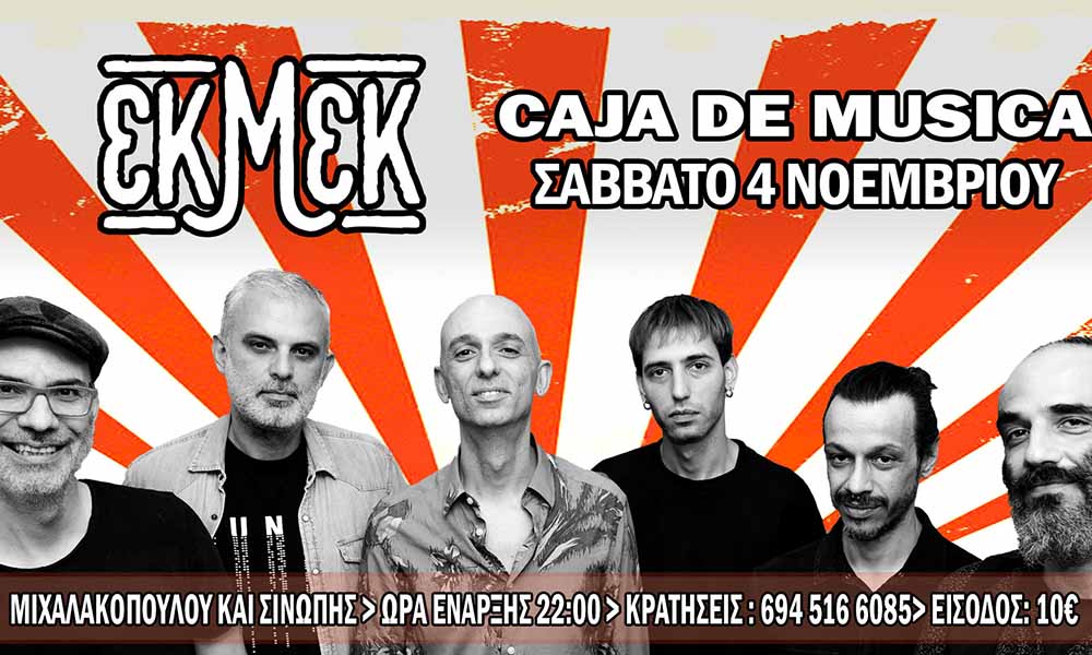 Το Σάββατο 4 Νοεμβρίου, οι ΕΚΜΕΚ βγαίνουν από το στούντιο, όπου ηχογραφούν το καινούργιο τους άλμπουμ, και μπαίνουν στο Caja De Musica. Με τραγούδια δικά τους αλλά και αγαπημένα τραγούδια άλλων καλλιτεχνών πειραγμένα από το δικό τους χέρι, υπόσχονται μία βραδιά γεμάτη ενέργεια, ζωντάνια, συγκίνηση και μας καλούν να τη ζήσουμε μαζί!