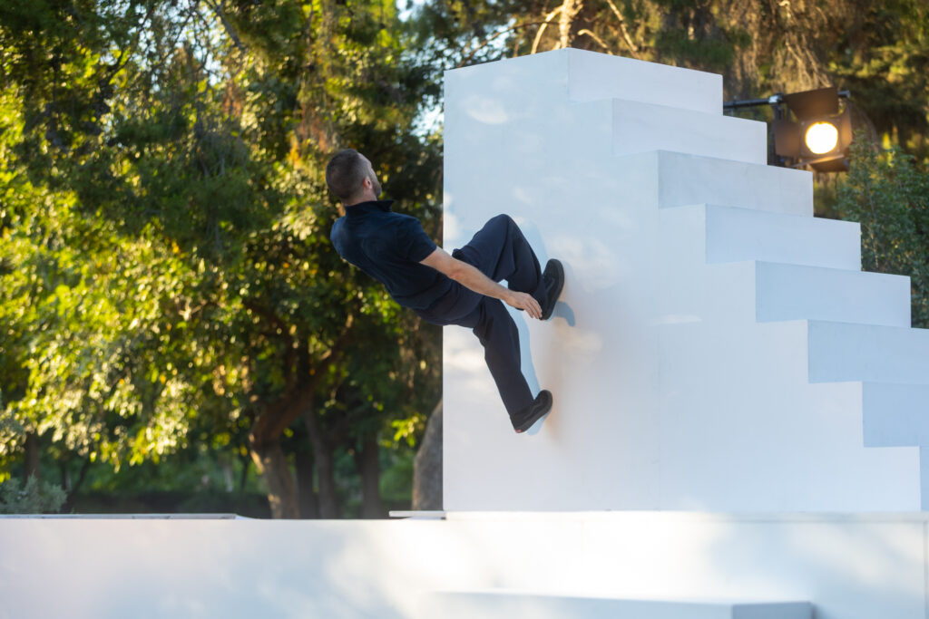 Χορογράφος των Harry Styles, Coldplay και Selena Gomez και συνεργάτης της Louis Vuitton, της Apple και της Tiffany & Co., o Γάλλος δημιουργός Γιοάν Μπουρζουά παρουσιάζει για πρώτη φορά δουλειά του στην Αθήνα και, συγκεκριμένα, ένα από τα πιο διάσημα έργα του: το Approach 17. Opening, ένα οπτικό ποίημα εν κινήσει, εμπνευσμένο από το μουσικό έργο Glassworks του Philip Glass. Έχοντας ξεκινήσει από τον χώρο του τσίρκου, ο Μπουρζουά έχει ως σήμα κατατεθέν μια ακροβατική, απρόβλεπτα αστεία και συγκινητικά ποιητική κινητική γλώσσα, στα όρια της αρχιτεκτονικής και του χορού. Αψηφά τους νόμους της φύσης και απελευθερώνει τα σώματα στην ύψιστη χαρά της αιώρησης, προσεγγίζοντας με υπαρξιακούς όρους την τσιρκολάνικη ακροβασία. Γιατί το σιωπηλό πλάσμα που ανεβαίνει τη σκάλα –προς τον ουρανό, το τίποτα, τα πάντα;– μόνο και μόνο για να πέσει και να την ξανανέβει είναι σαν να απηχεί το απόφθεγμα του Samuel Beckett: «Προσπάθησε ξανά. Απότυχε ξανά. Απότυχε καλύτερα».