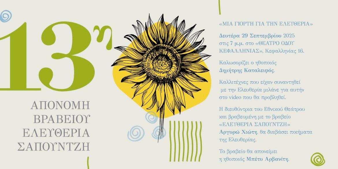 Ανακοίνωση για το βραβείο ΕΛΕΥΘΕΡΙΑ ΣΑΠΟΥΝΤΖΗ 2025