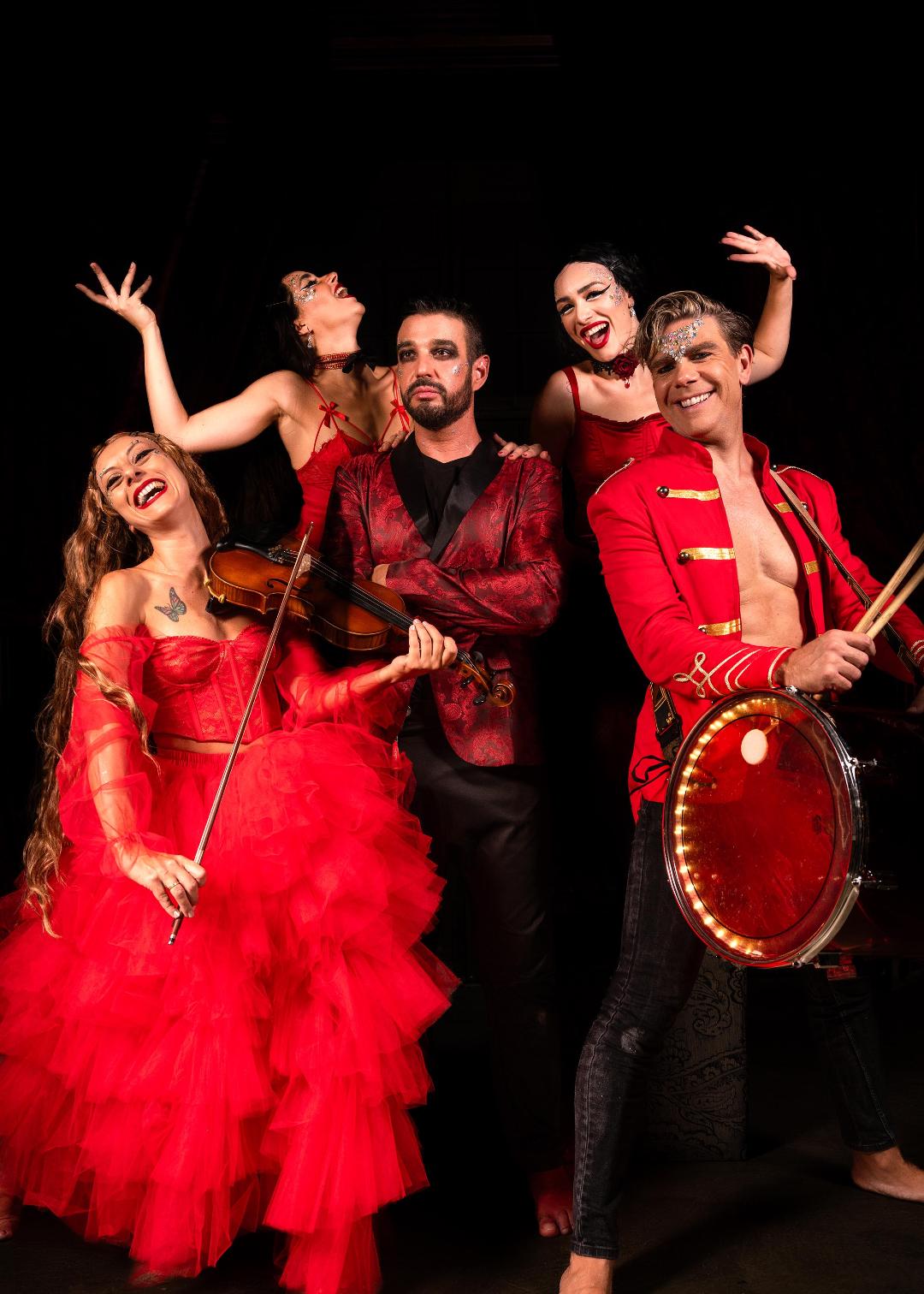 Μια βιολίστρια που χορεύει, ένας εναέριος-κρουστός/κιθαρίστας, δύο χορεύτριες με φωτιές, μια εναέρια που κρέμεται από τα μαλλιά της και ένας τραγουδιστής, συνθέτουν ένα πολυθέαμα με ζωντανή μουσική, χορό, εναέρια ακροβατικά και fire show, με φαντασμαγορικά κοστούμια και μάσκες που θα σας μεταφέρουν σε έναν κόσμο, σκοτεινά μαγικό και ποιητικά απόκοσμο.