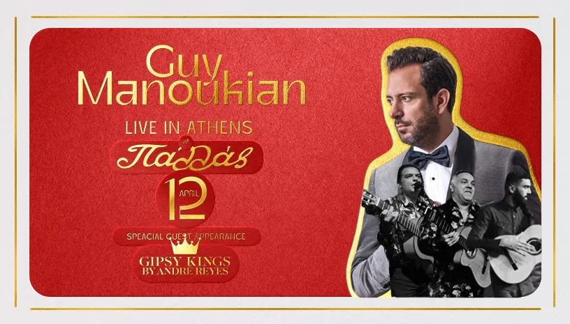 Για περισσότερες πληροφορίες σχετικά με τη συναυλία του Guy Manoukian & των Gipsy Kings by André Reyes στο Θέατρο Παλλάς και κρατήσεις εισιτηρίων: https://www.viva.gr/tickets/music/guy-manoukian/