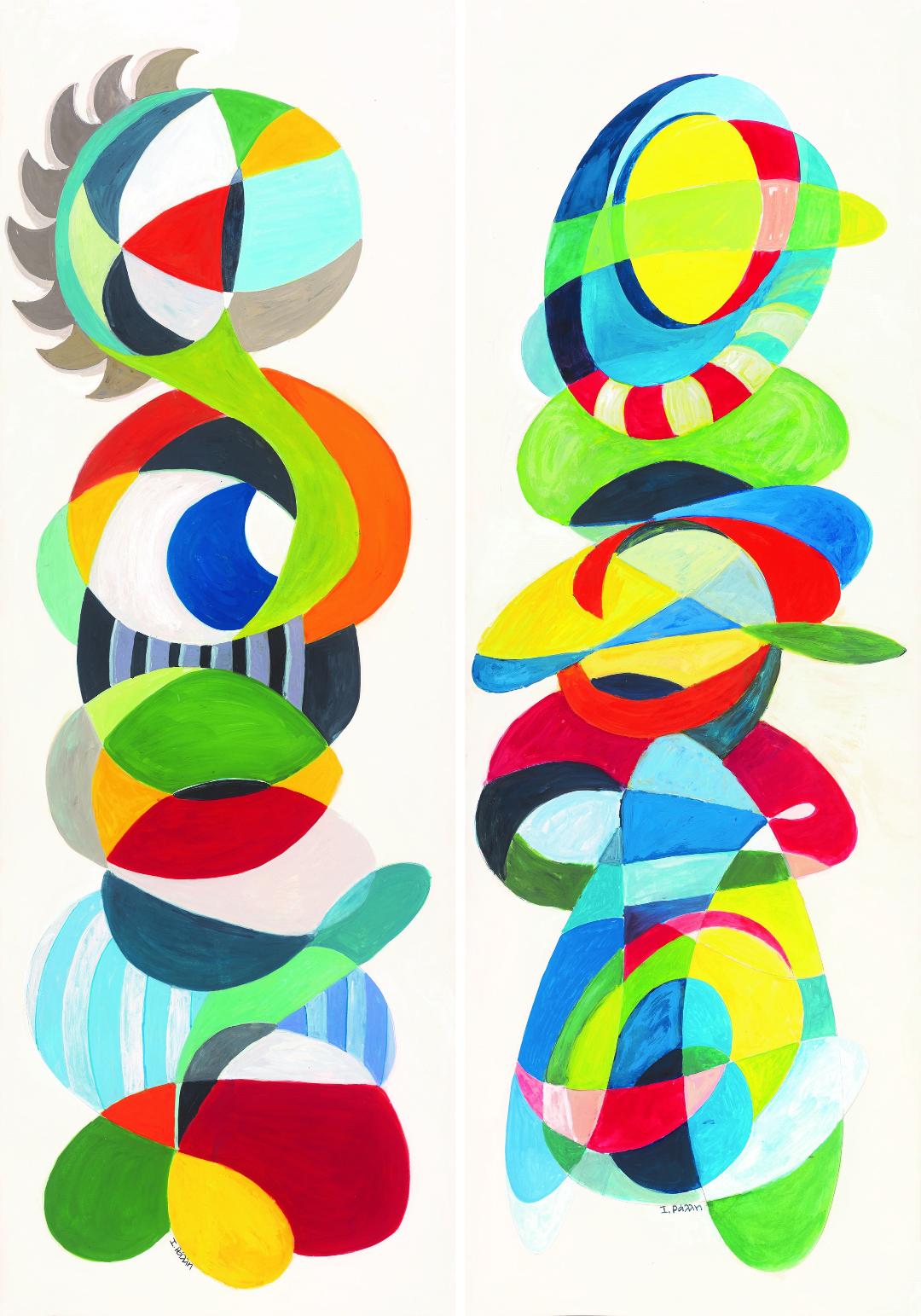 Στην έκθεση παρουσιάζεται μια σειρά από 12 ζευγάρια, τέμπερα σε χαρτί, ένα έργο αποτελούμενο από 72 μικρά ζωγραφικά, καθώς και μια γλυπτική εγκατάσταση.