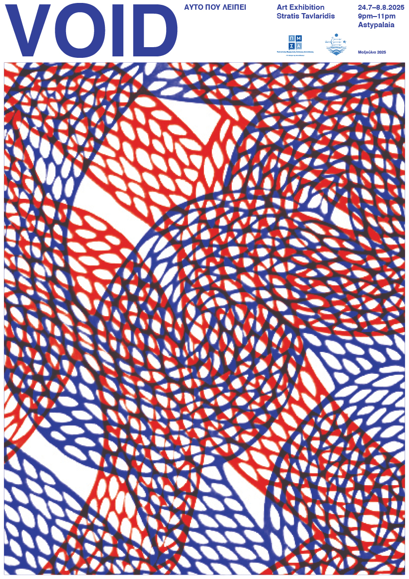 Ο Στρατής Ταυλαρίδης, έπειτα από αλλεπάλληλα καλοκαίρια στην Αστυπάλαια, επιστρέφει με την πρώτη ατομική έκθεση στον τόπο αυτόν. Το έργο του εμφανίζεται μέσα σε ένα τοπίο που, χωρίς να το επιδιώξει, έχει υφανθεί μέσα στη σκέψη του. Η σπείρα, επαναλαμβανόμενο μοτίβο στο εικαστικό του λεξιλόγιο και έντονα παρούσα στο νέο αυτό έργο, μοιάζει να συγγενεύει παράδοξα με τις χαράξεις που συναντά κανείς στις πέτρες του νησιού, όπου σπειροειδή σχήματα έχουν σκαλιστεί στο χέρι, αιώνες πριν.